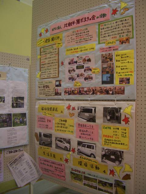 「NPO陽だまりの会」は今年も地域の文化祭に参加しました。 模擬店「喫茶陽だまり」は4年連続の出店、「陽だまり墨彩画教室」も4年連続、「陽だまりパソコン喫茶」は2回目の出展をしました。 今年は好天に恵まれ、雨の心配もなく午後も多くの人が訪れ、模擬店ではパソコン指導の先生によって作られた新しい赤いパソコン字体の「喫茶陽だまり」の看板のれんがよく目立っていました。 かやくごはんは完売、ぜんざいとコーヒーで喫茶コーナーも賑わいました。 また支援グループの里山倶楽部がヒラタケのホダ木の実物展示と予約販売を行ない、興味ある人が多く好評でした。 展示会場では墨彩画教室が、9作品を出展し、パソコン喫茶の皆さんは作品のカレンダーを展示されました。 また今年はじめて「NPO陽だまりの会」の活動パネル展示、里山倶楽部はパネル展示とヒラタケのホダ木も展示していました。 「NPO陽だまりの会」関係の方々の協力で年々よくなり、地域の多くの方々と交流ができました。(中山記) |