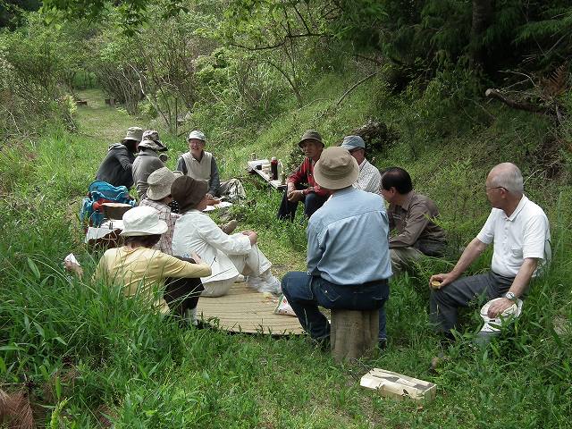 5月の爽やかな風の吹く中、鳥の声を聞きながら香りの高いお茶をいただくという贅沢を堪能したことだった。 今日はじめて谷へ入った人が何人もいたが、もっともっと多くの住民に宣伝しなければならないと感じた。(田畑)