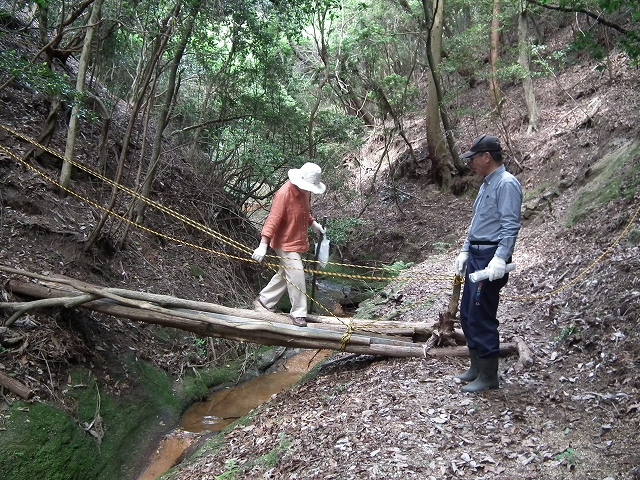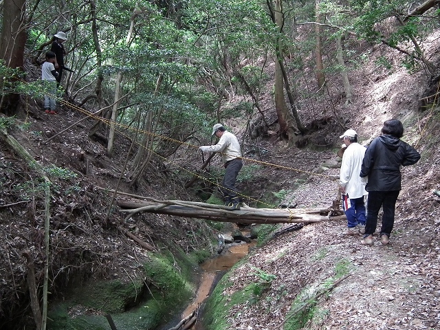 D はじめての女性や小学生がいた。水に濡れながらの困難な渡渉であったが、竹林の直下まで到着した。