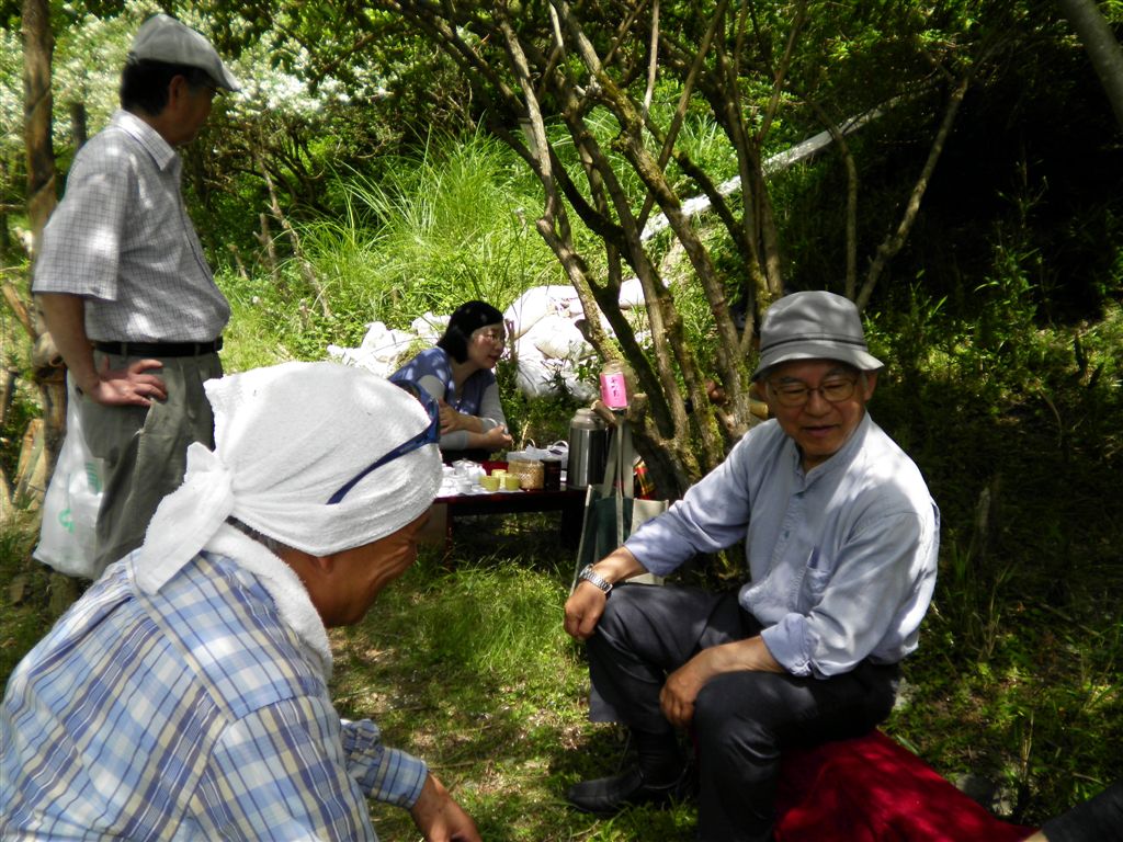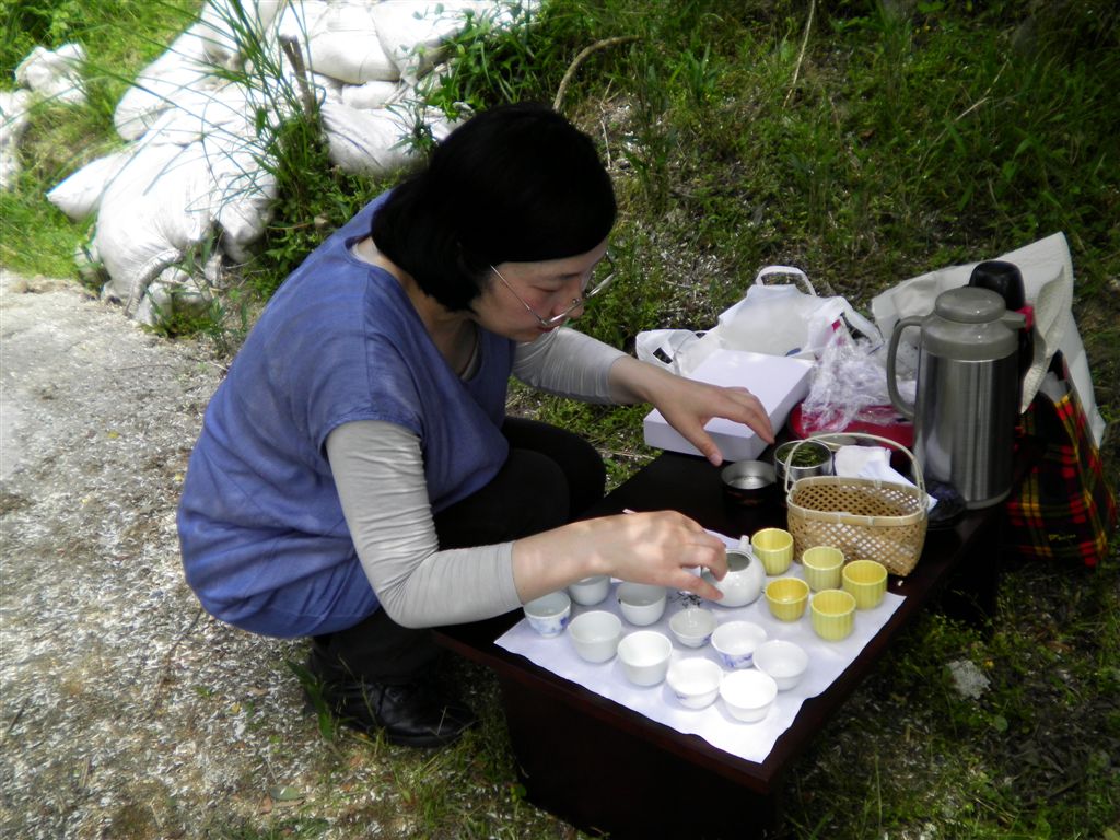 | (所見) | 参加者17名のうち夫婦づれが6組もいたことは、野点という内容からしてすばらしかった。立札に「自由に参加してください」と書いたのを見て、はじめての若い夫婦が飛び込みで参加してくれたのもうれしい。(以上 文責 田畑)