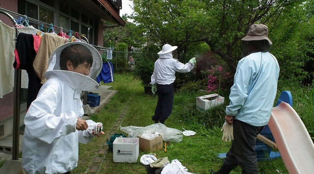 もし町内で同様に分蜂が起これば、蜂を興奮させずに、里山倶楽部にご一報下さい。