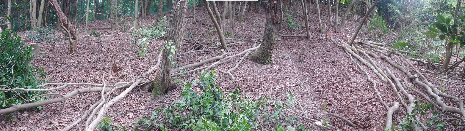 ソヨゴの木を30本ほど切り倒し、葉のついた枝はインディアンハウスの屋根の材料にするため、切りました。
