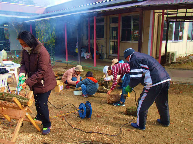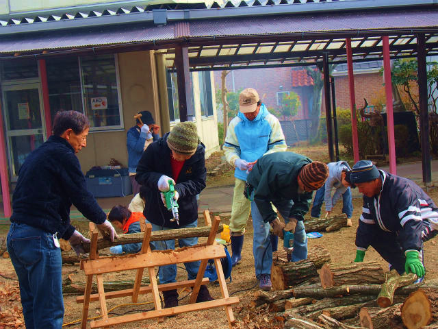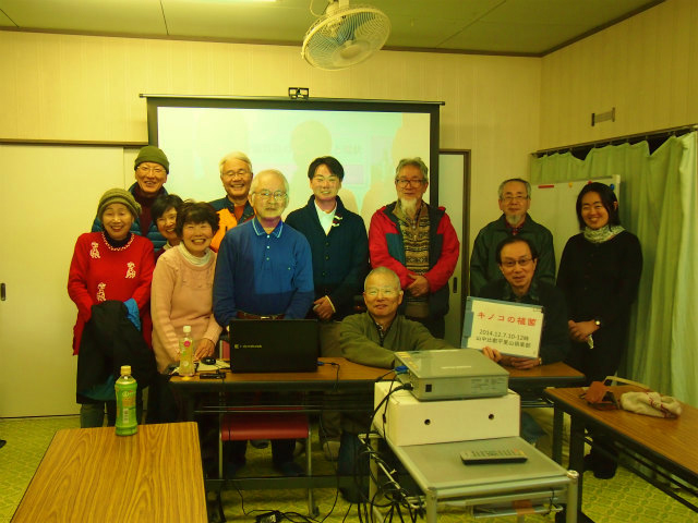 きのこの植菌作業と「獣害対策」の講演会