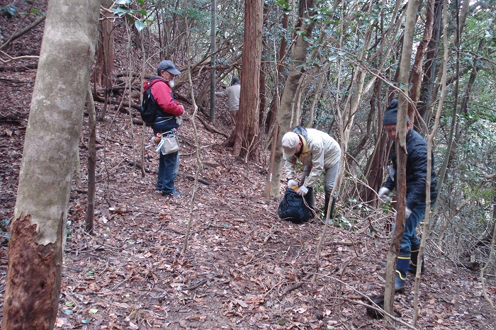 2.風倒木があったりして荒れている場所を通って、進みます。木を伐って片付ければ道ができるでしょう。 |