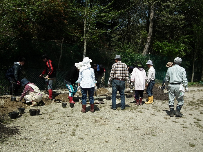 | C | 作業は順調にはかどり、用意した場所全部と南側に合計70本を植えた。水やりも完了。