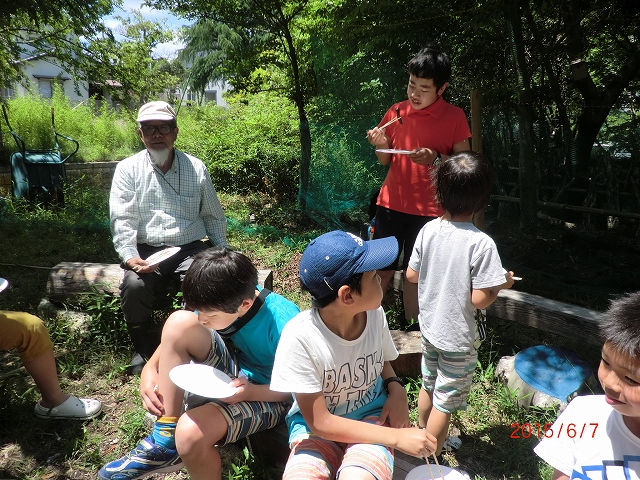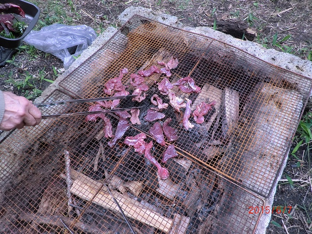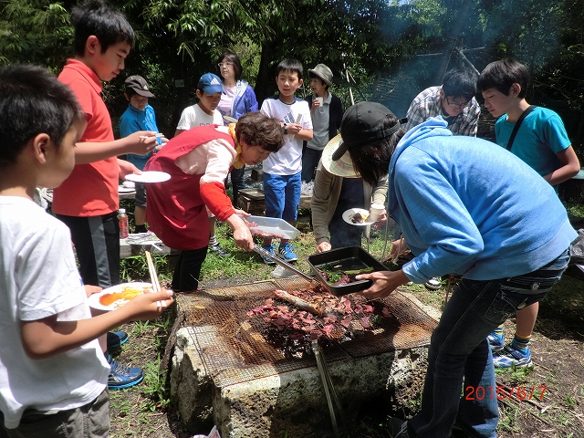 | 経 過 | 6月6日午後は、桂広場で地場産の鹿、猪肉のバーベキューです。
